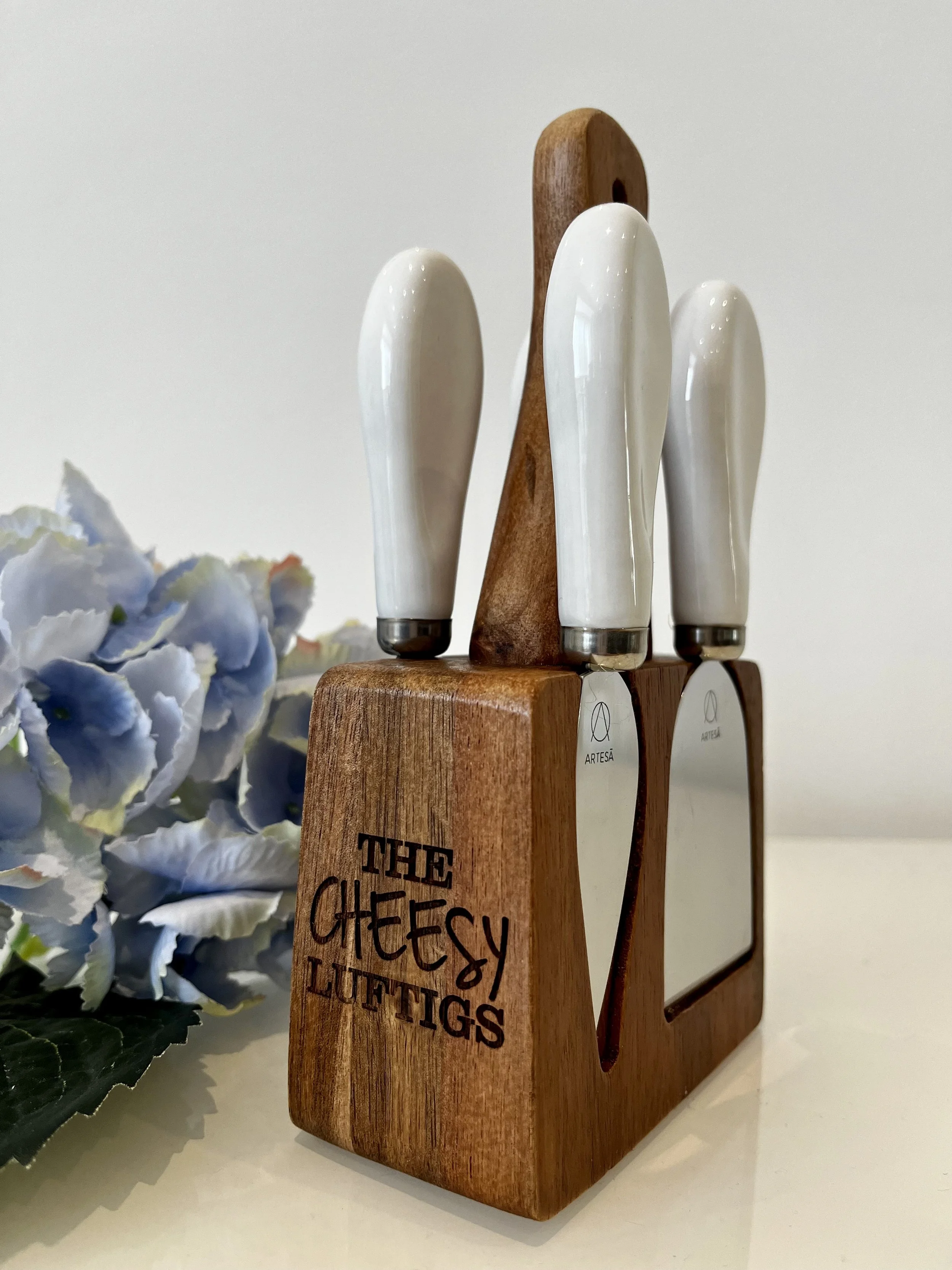 AThe perfect Shavuos hostess gift – elegant, practical, and beautifully personal. This 5-piece cheese knife set features a magnetic acacia wood block that can be engraved for a thoughtful finishing touch, making it a gift they’ll actually use and proudly display.